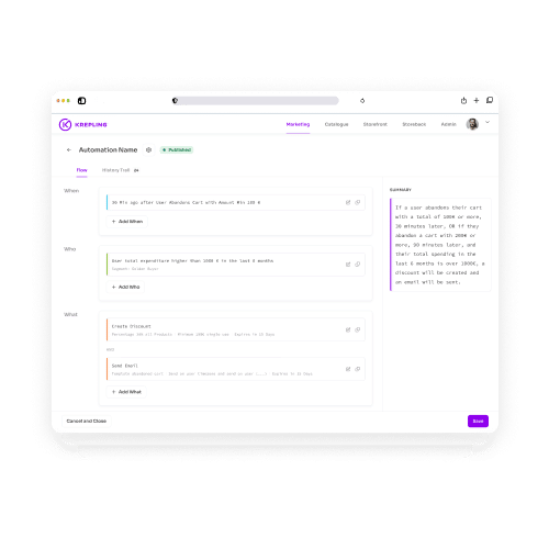 Krepling is an AI-powered, no-code e-commerce platform tailored for managers who want to streamline operations and bypass complex technical setups. Integrating seamlessly across front, mid, and back-office tools, it empowers users to focus on scaling their business rather than managing intricate IT challenges.