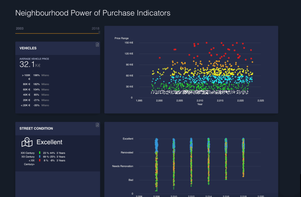 With the decisions closed in the previous steps, we went on developing the tool through agile cycles. Meanwhile, the data team, with knowledge on several datasets, started testing the model on the city of Milan (objective of more than 10b EUR investment plan in the next decade) and fine-tuned the parameters.