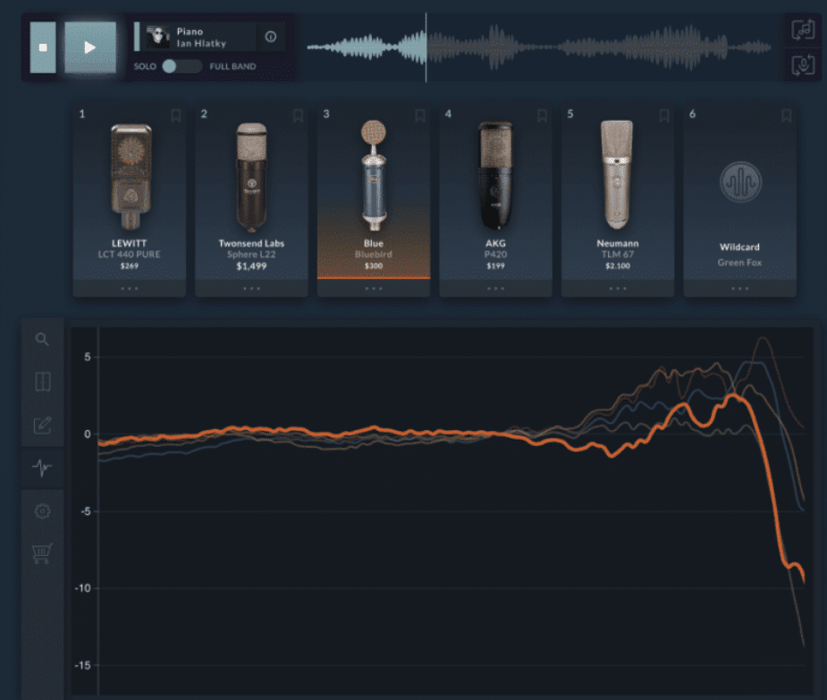 Each piece of gear is connected to real soundtracks that have been recorded using that particular piece; even more granularly; as each soundtrack is broken down into several instruments playing, the user can assess the recording quality of the gear on that particular instrument.
